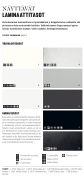 TIEDOT: 1. 2255V Valkea väre 2. 9417U Puhdasvalkea väre 3. 9417HW Puhdasvalkea kiiltävä 4. 9417KS Valkea Keramos 5. 2965V Vaalean harmaa 6. 2967V Tummanharmaa 7. 0901TS Musta, matta 8. 0901KS Musta Keramos