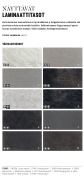 TIEDOT: 1. 0023EM Carrara marmori 2. 3540U Harmaa graniitti 3. 3504XX Vaalea rajamarmori 4. 3505XX Raja marmori 5. 3450XX Musta lohkokivi 6. 3417U Amarello graniitti 7. 7959UE Vintage grafiitti 8. 3405G Kiiltävä mustakivi 9. 3490U Vuolukivi 10. 4945U Patinoitu kupari